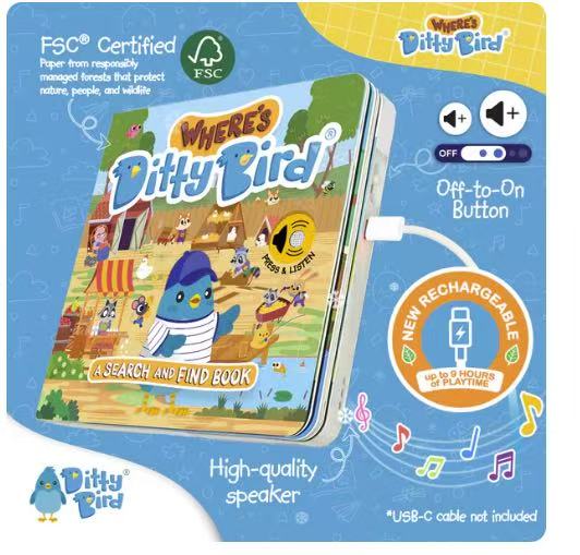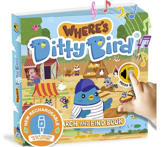 Join the adventure with Ditty Bird in this engaging and interactive search-and-find sound book! Young readers will love helping Ditty Bird explore various scenes while listening to delightful songs and sounds. This charming book features colorful illustrations and a playful storyline where children can search for Ditty Bird as he hides in different places. With each turn of the page, little ones will discover new animals, objects, and surprises to keep them entertained